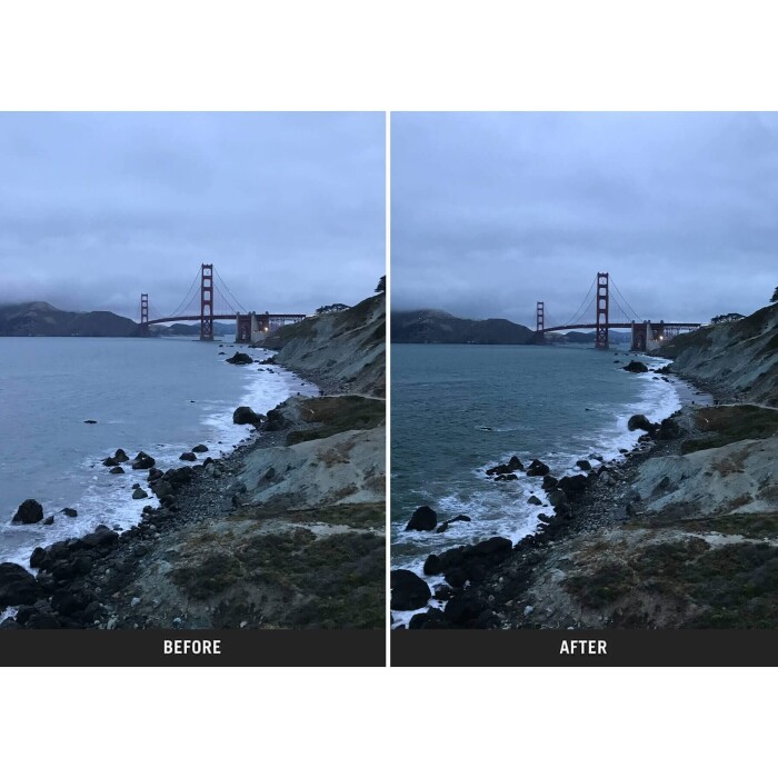 Drama Polarizer Filter funguje jako polarizované sluneční brýle pro váš telefon. Pomáhá potlačit povrchové odlesky, pořizovat dynamické krajinářské fotografie, ztmavovat oblohu a zvládat odrazy.